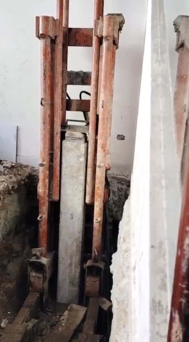 - Dùng một đoạn cọc dẫn thép để ép cọc xuống, sau đó rút cọc lên và ép tiếp cho cọc khác.